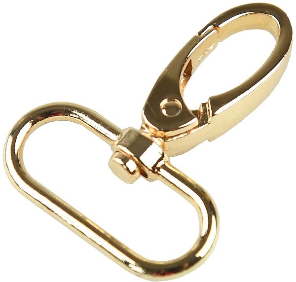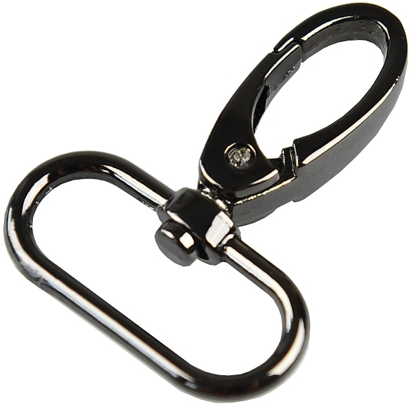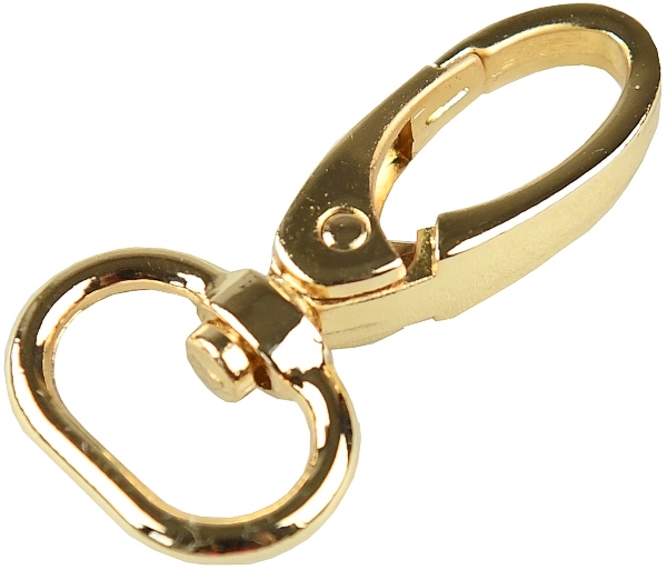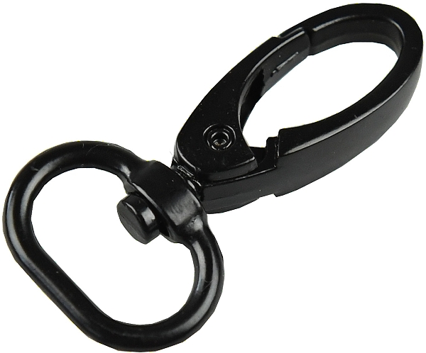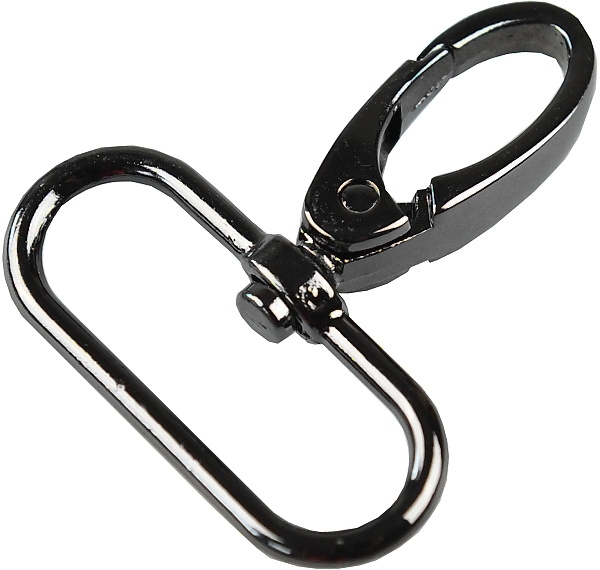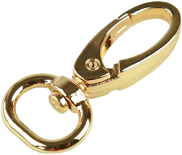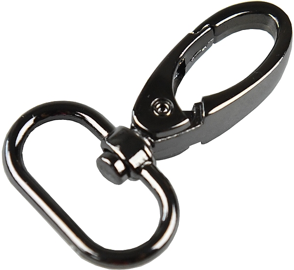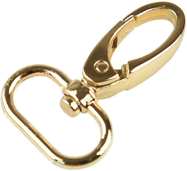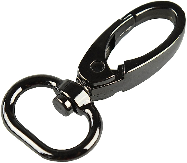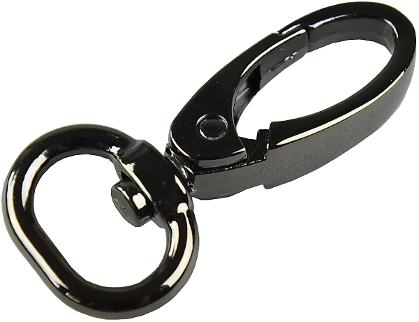 Kovová karabina otočná v 5 barevných odstínech: světlé zlato, nikl, černý nikl a mat černý. Karabina je vhodná na kabelky, tašky nebo přívěšky.