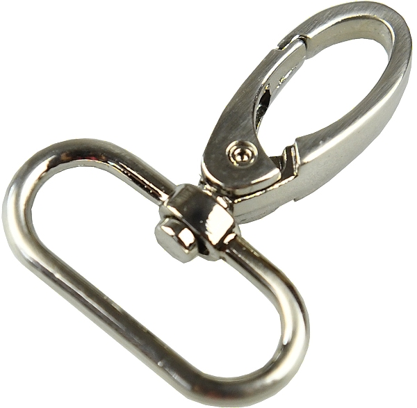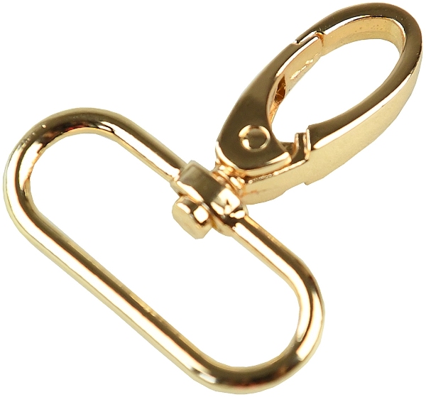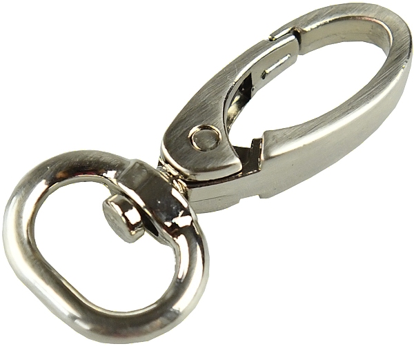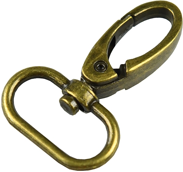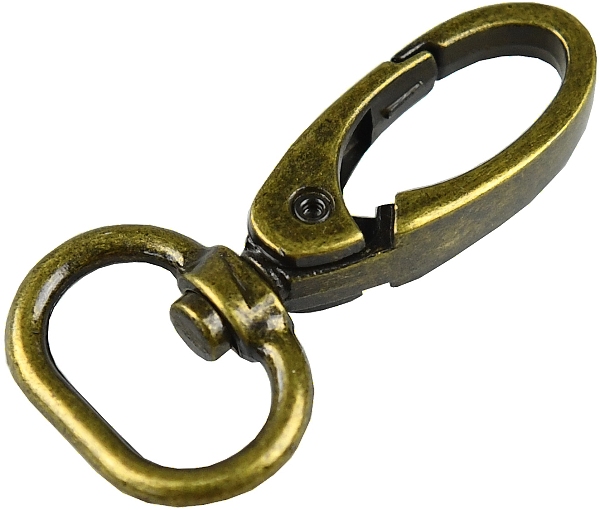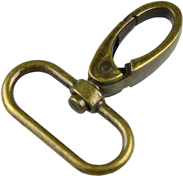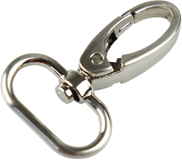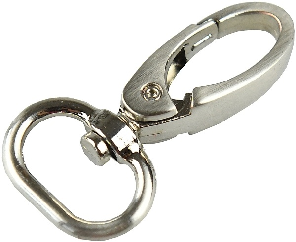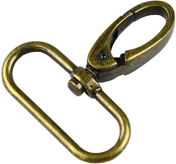 Kovová karabina otočná v 5 barevných odstínech: světlé zlato, nikl, černý nikl a mat černý. Karabina je vhodná na kabelky, tašky nebo přívěšky.
