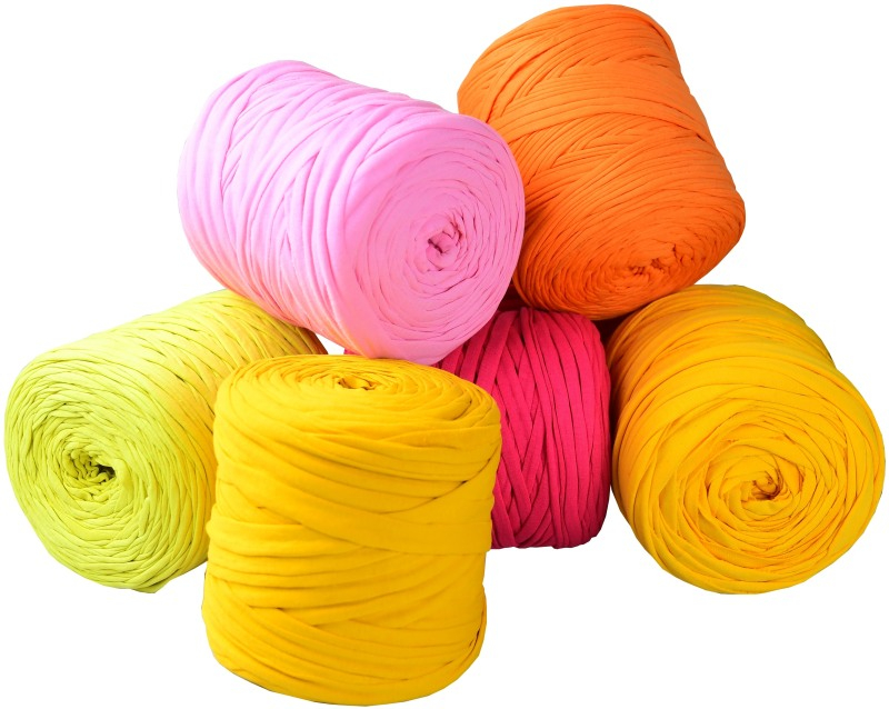 Špagetovou přízi tvoří nařezané proužky látky z recyklované bavlny. Příze je mírně elastická. Využijete ji na pletení a háčkování koberečků, dek, tašek, šál, košíků, batohů, povlaků na polštáře apod.